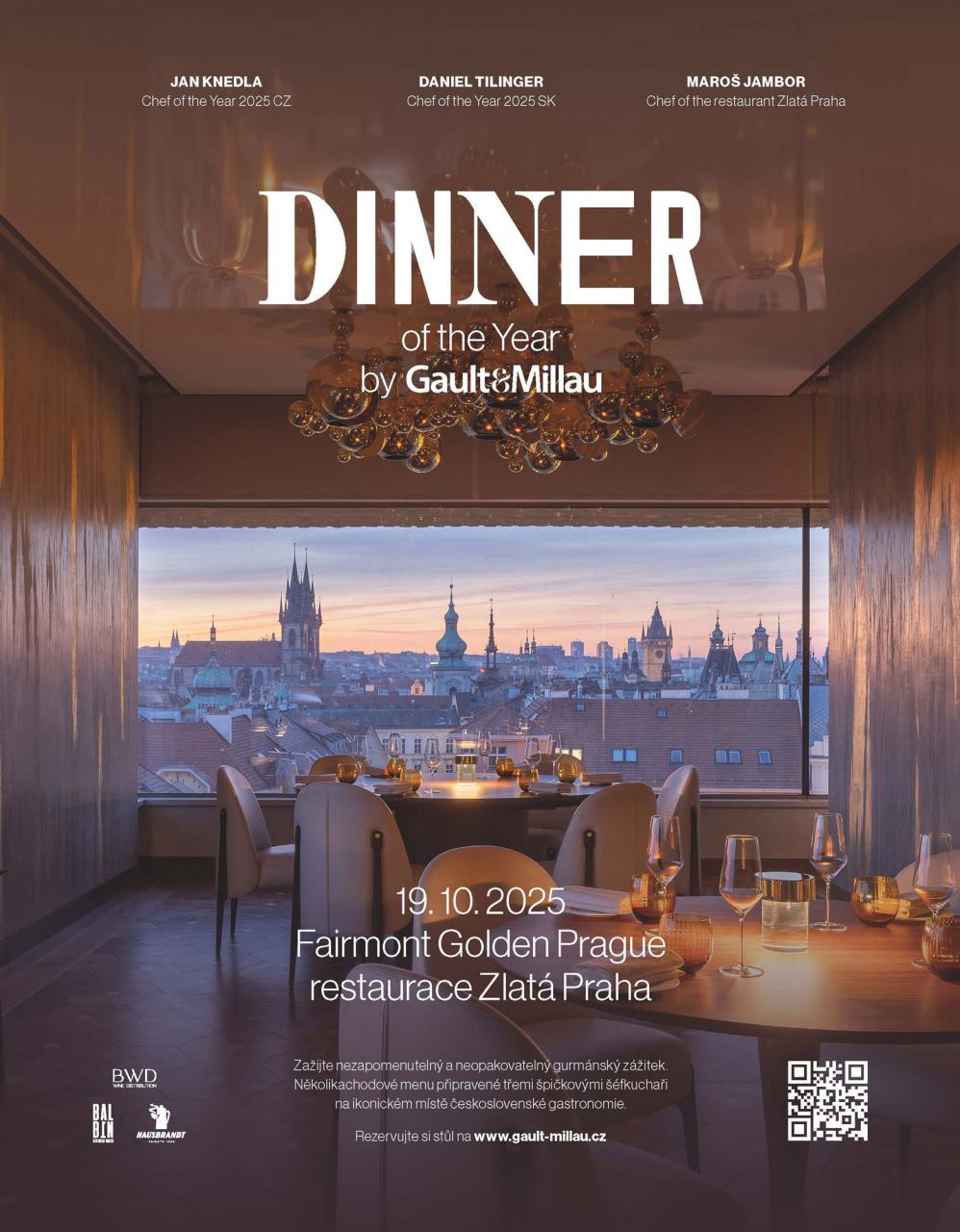 Unikátní fine diningový event nazvaný příznačně Dinner of the Year uspořádá poprvé v Česku mezinárodní gastronomický průvodce Gault&Millau. Hostit ho bude v neděli 19. října 2025 ikonické místo československé gastronomie – střešní restaurace Zlatá Praha, klenot letos znovuotevřeného pětihvězdičkového luxusního hotelu Fairmont Golden Prague (dříve InterContinental).