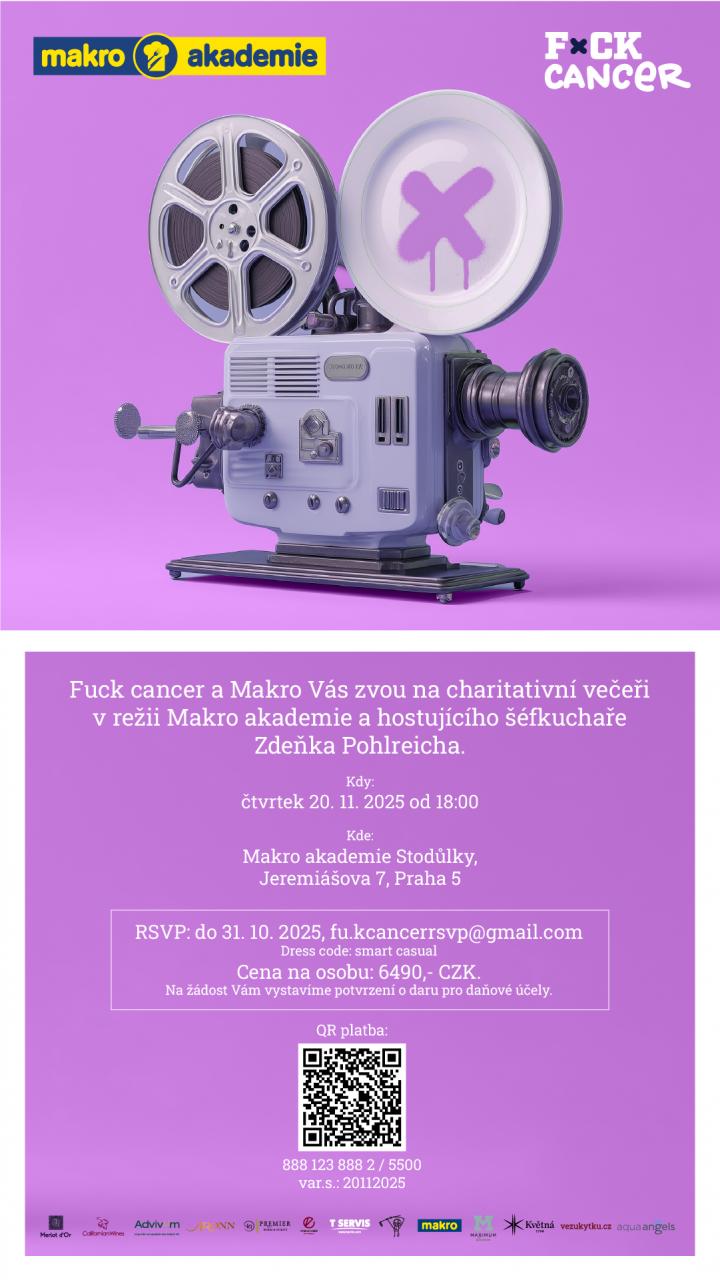 Celý výtěžek z večera – 6 490 Kč za osobu – putuje prostřednictvím Makro, partnerů a dobrovolníků na účet neziskové organizace Fuck Cancer, která dlouhodobě podporuje onkologické pacienty. Pomáhá jim s návratem do běžného života, vzděláváním i finanční stabilitou.