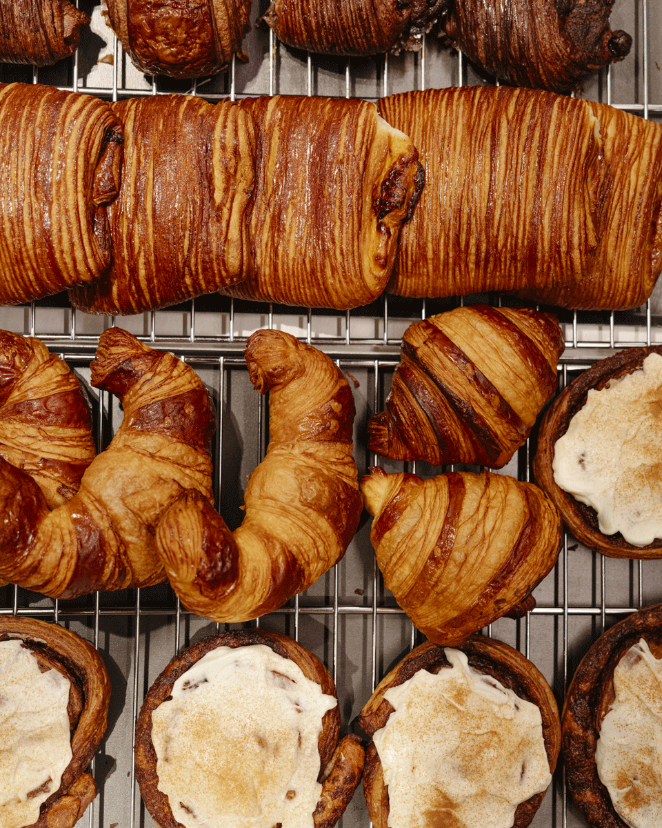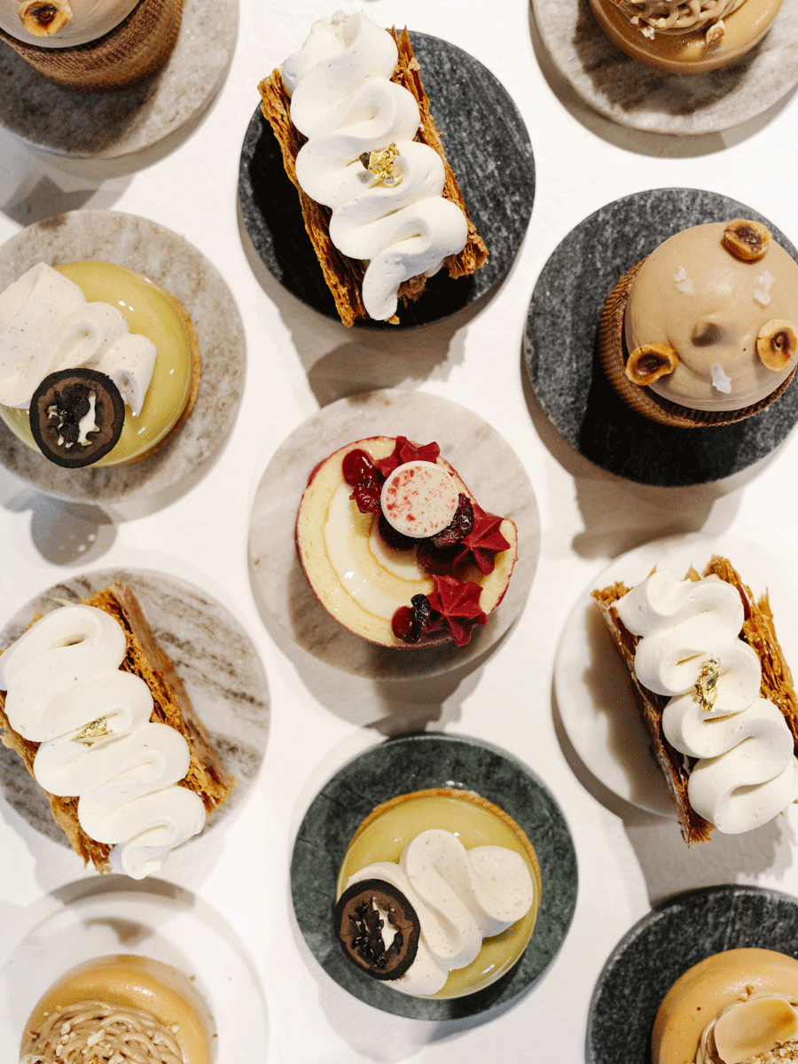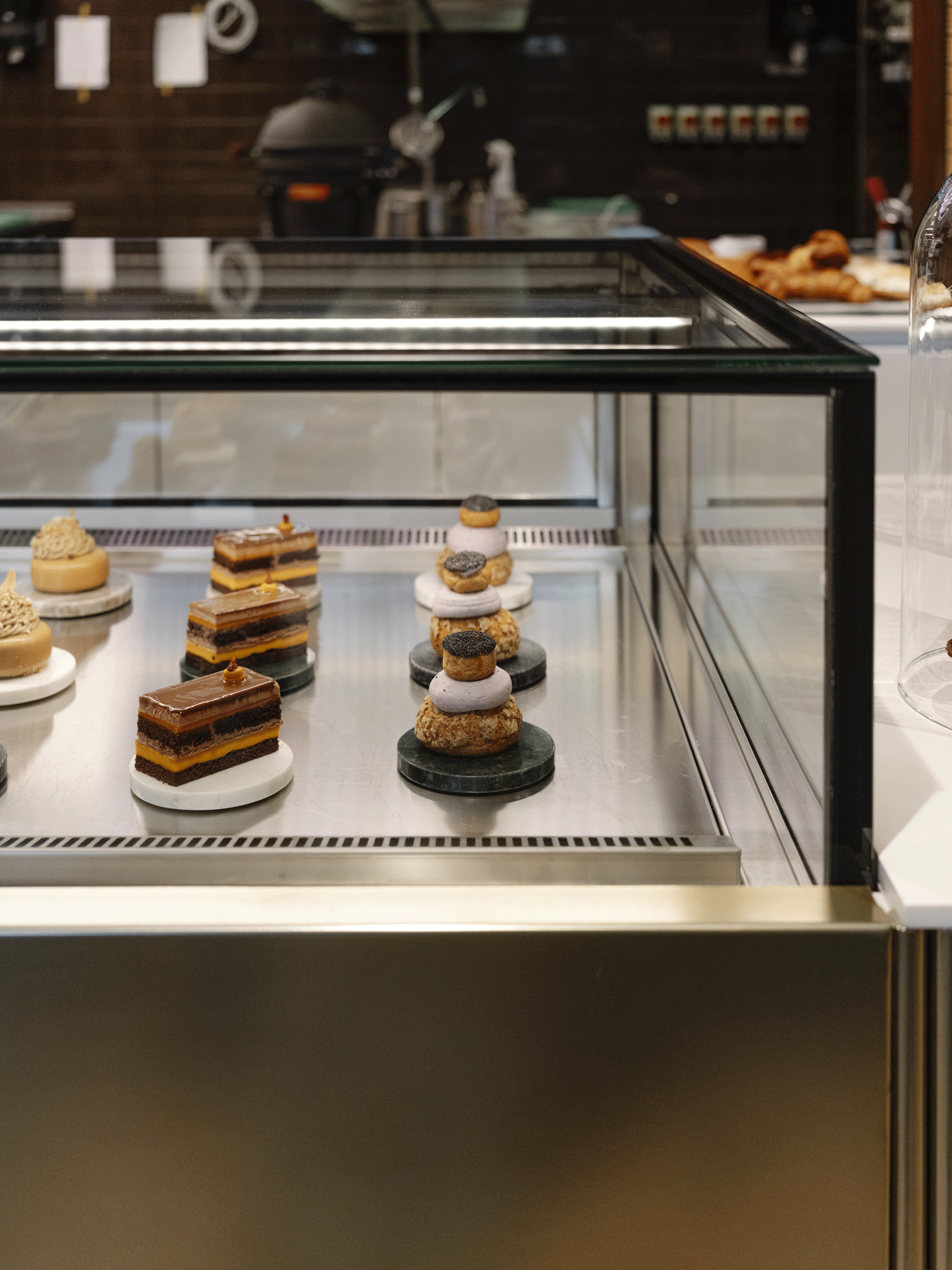 ASK4 má i vlastní tým cukrářů, kteří tvoří originální dezerty, plněné croissanty a sladké pečivo přímo na místě. Každý z nich má osobitý rukopis – od monoporčních dezertů přes tradiční pečivo až po talířové kreace. Výsledkem je pestrá a proměnlivá nabídka, která sdílí stejnou filozofii: poctivost, estetiku a chuť.