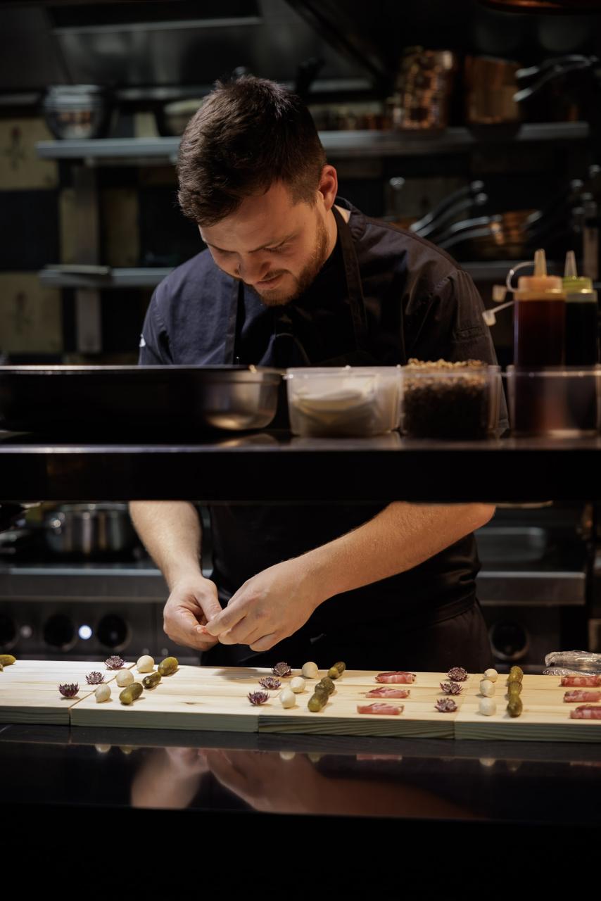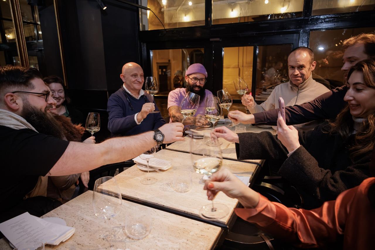 Mezi stoly se pohyboval Tomáš Kalina, organizátor Culinary Symposium Prague — nebýt jeho a Symposia, tento večer by nenastal. Energie, kterou přinesl, byla téměř hmatatelná.