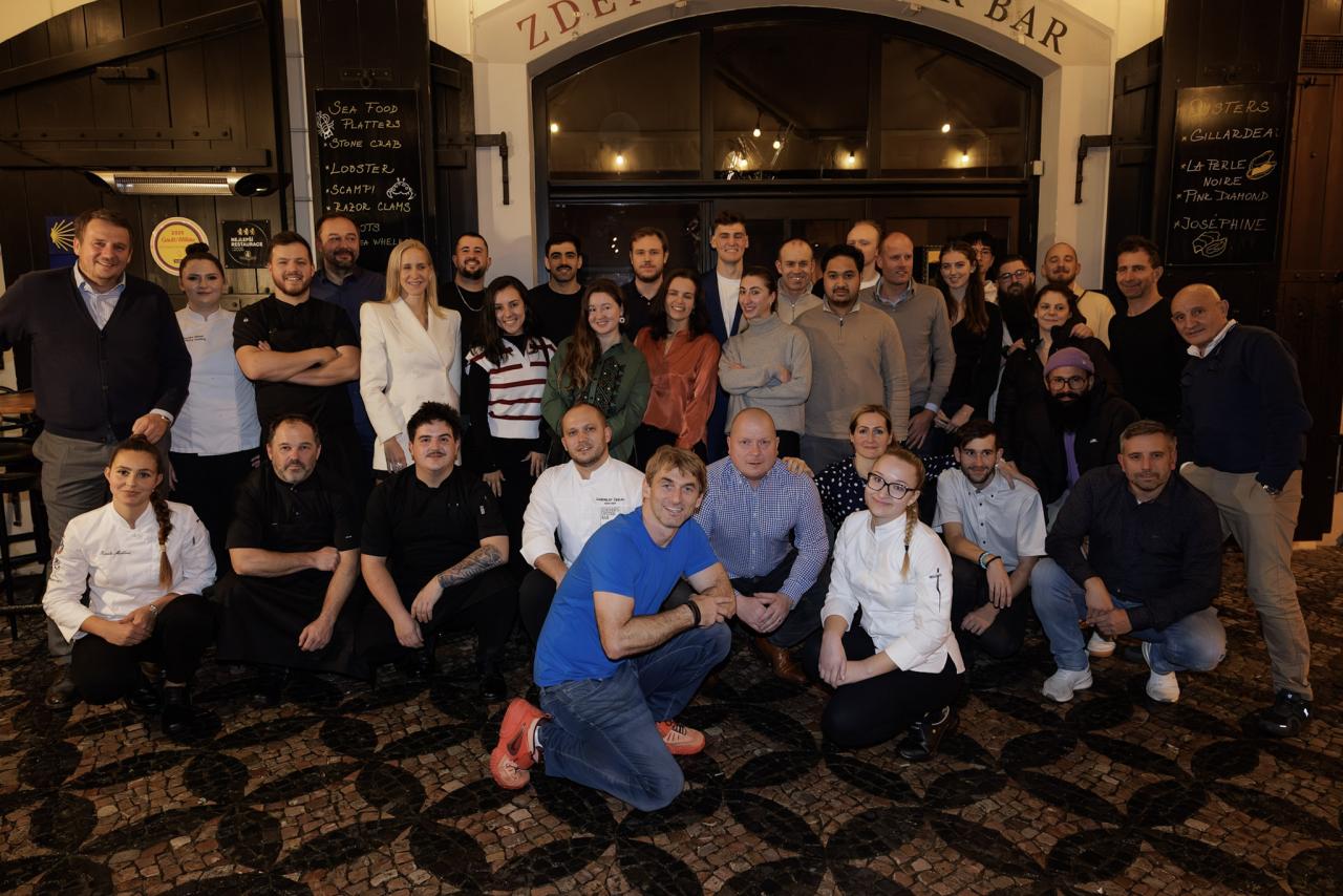 První dojem? Elegance a soustředění. Zdenek’s Oyster Bar, stojící na jedné z nejlepších gastronomických adres v Praze, ten večer působil jako místo, které na pár hodin přestalo existovat pro kohokoliv jiného. Stoly byly pečlivě prostřené, světlo intimní a jemné jako satén, a nad tím vším se vznášela napjatá, očekávající atmosféra, kterou přivezlo šest šéfkuchařů s dohromady třinácti michelinskými hvězdami.
