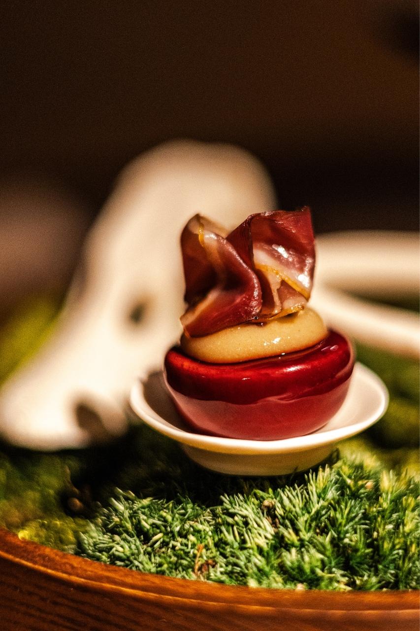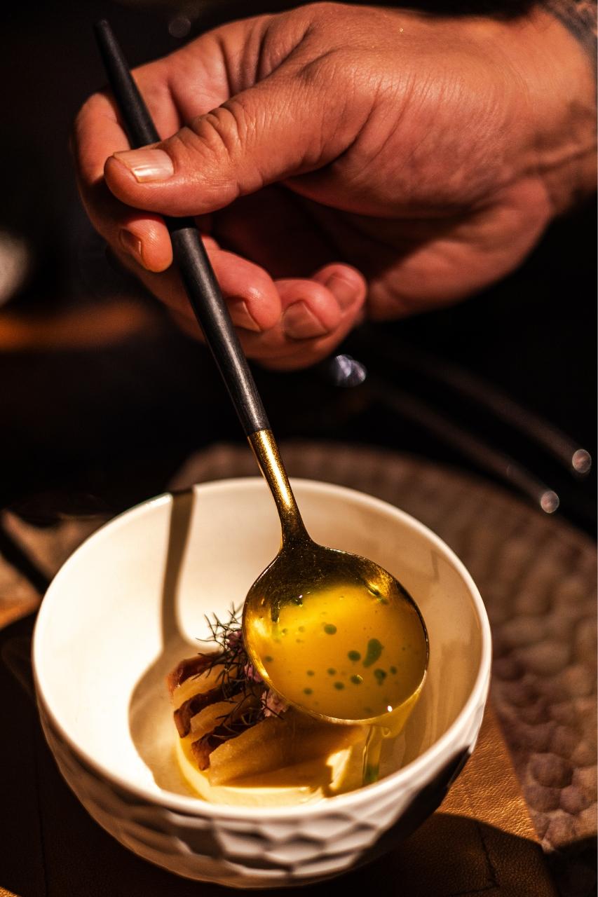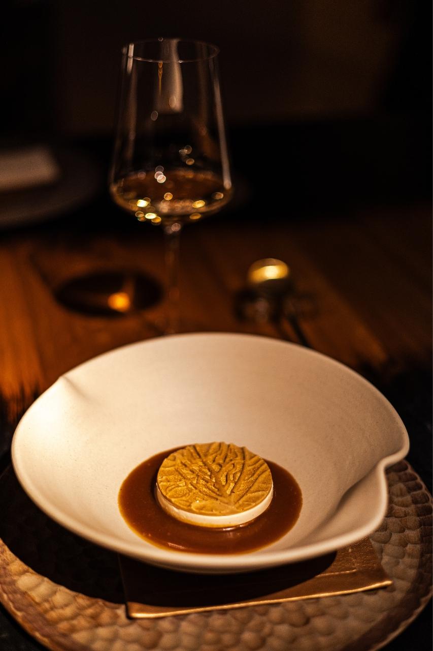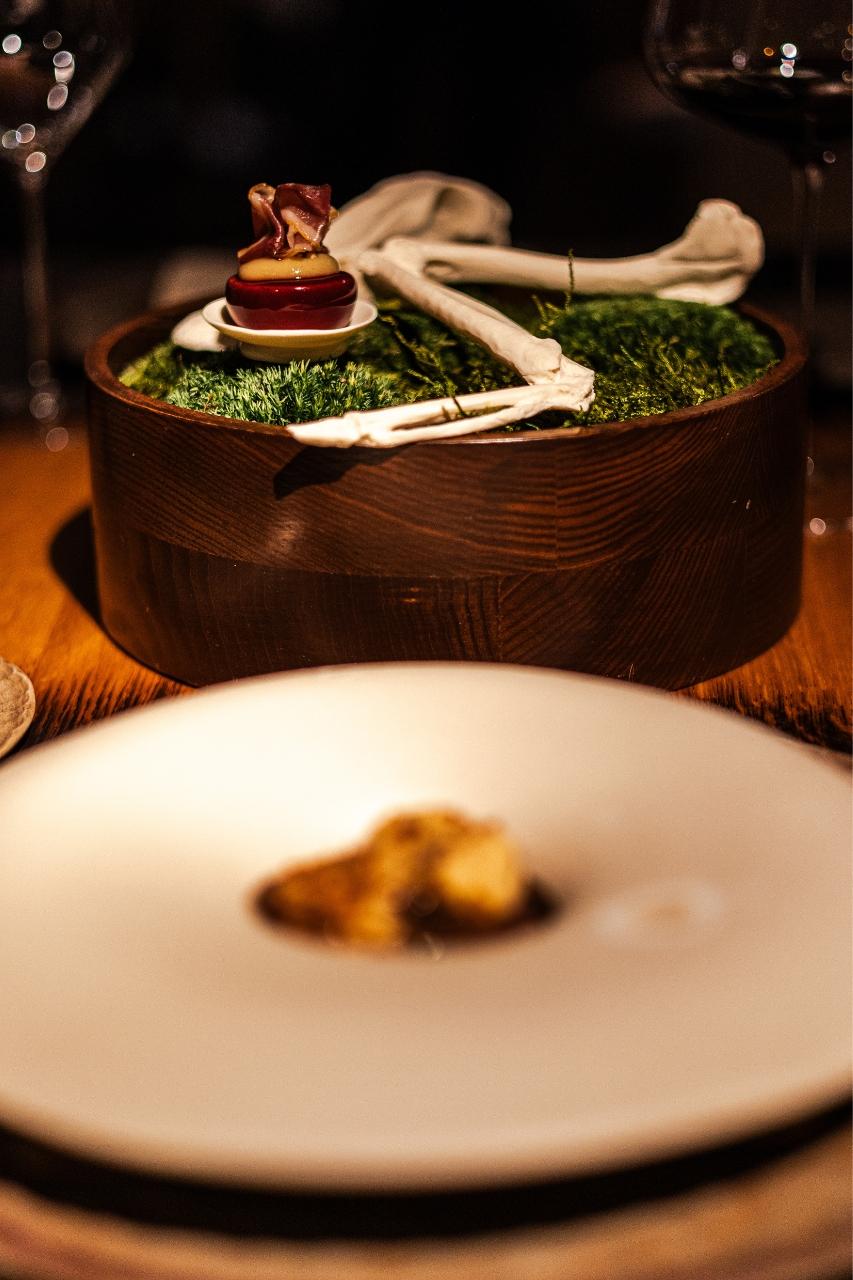 „Co mě úplně vystřelilo z trenek,“ říká Radek Kašpárek, „je nealko párování k daňkovi, hlavnímu chodu. Daněk, houby… člověk si díky servisu připadá trochu jako v lese. Chtěl jsem do párování dostat chuť lesa a náš barman sáhl po brusince s jehličím – a je to naprosto geniální. Když jsem se napil a zavřel oči, ocitl jsem se s rodiči v Beskydech, když jsme šli do lesa na houby,“ vrací se šéfkuchař opět do dětství.