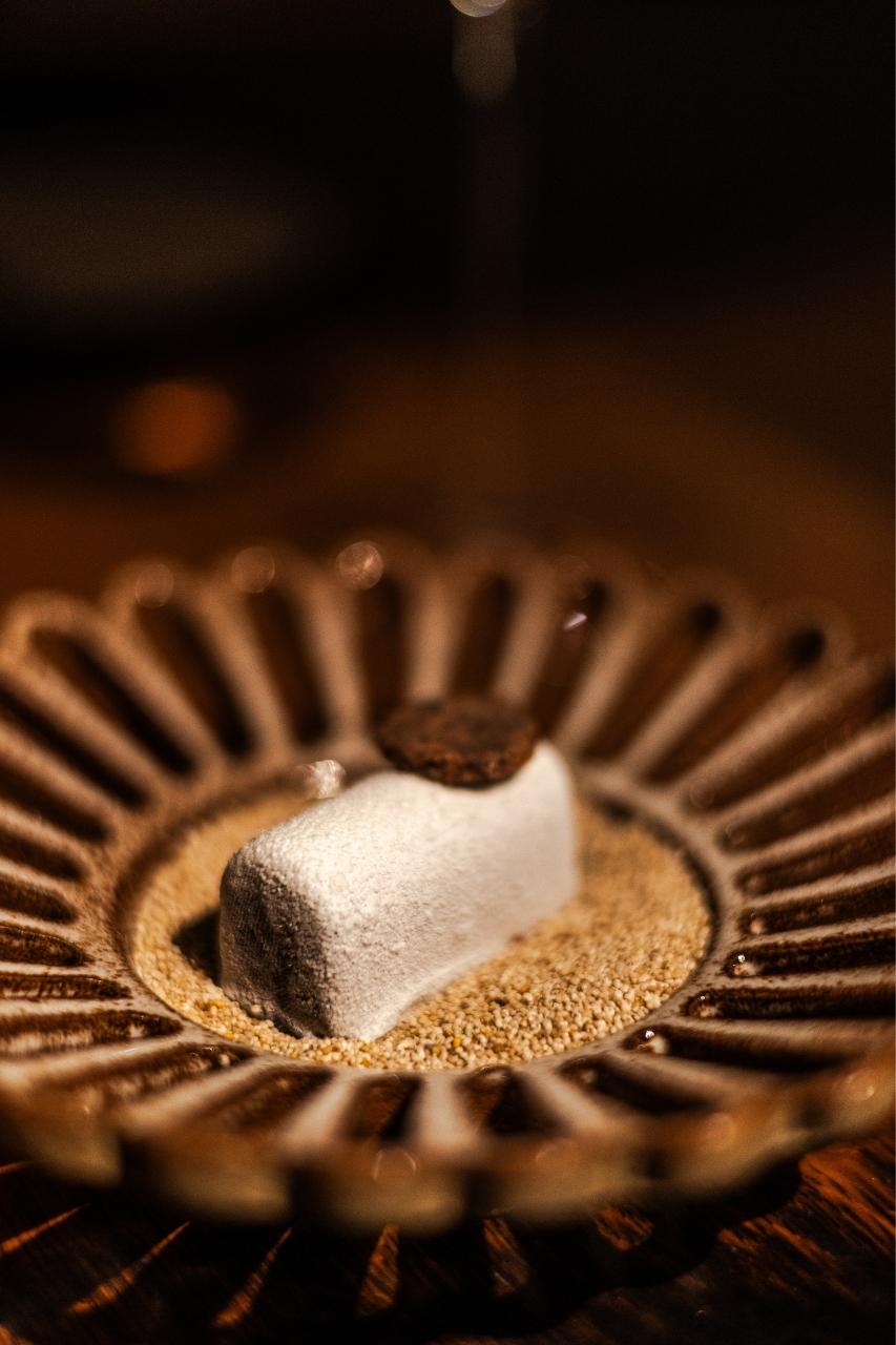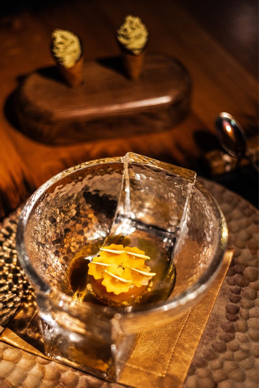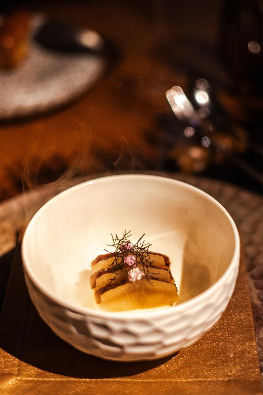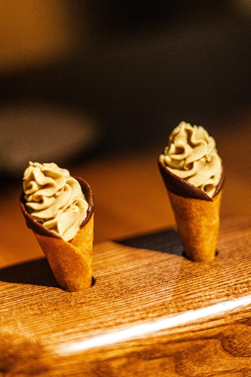 „Co mě úplně vystřelilo z trenek,“ říká Radek Kašpárek, „je nealko párování k daňkovi, hlavnímu chodu. Daněk, houby… člověk si díky servisu připadá trochu jako v lese. Chtěl jsem do párování dostat chuť lesa a náš barman sáhl po brusince s jehličím – a je to naprosto geniální. Když jsem se napil a zavřel oči, ocitl jsem se s rodiči v Beskydech, když jsme šli do lesa na houby,“ vrací se šéfkuchař opět do dětství.