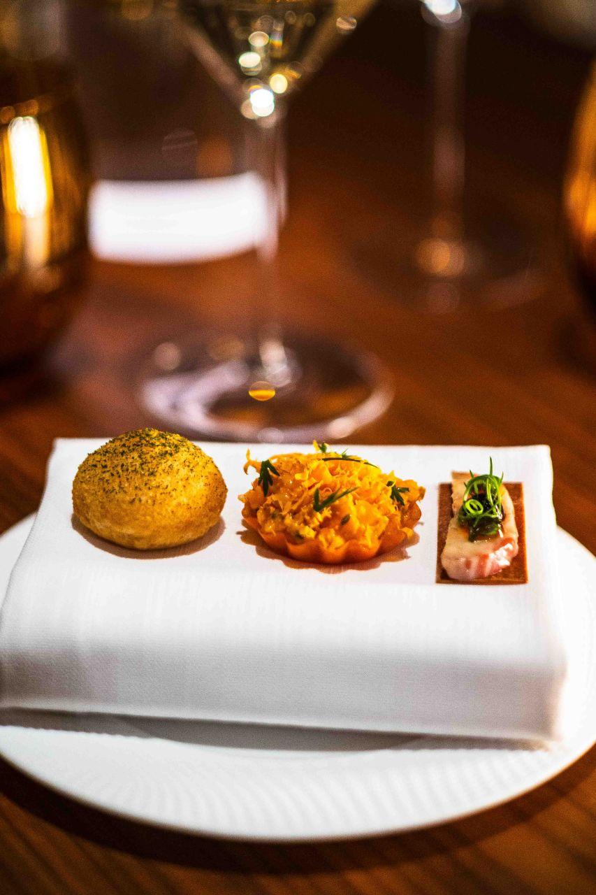 Je to předkrm, který stojí na iluzi jednoduchosti, přitom je technicky precizní a chuťově překvapivý. V jednom soustu se setkává hedvábná měkkost, oříšková zemité tóny a téměř elektrická kyselost rakytníku.