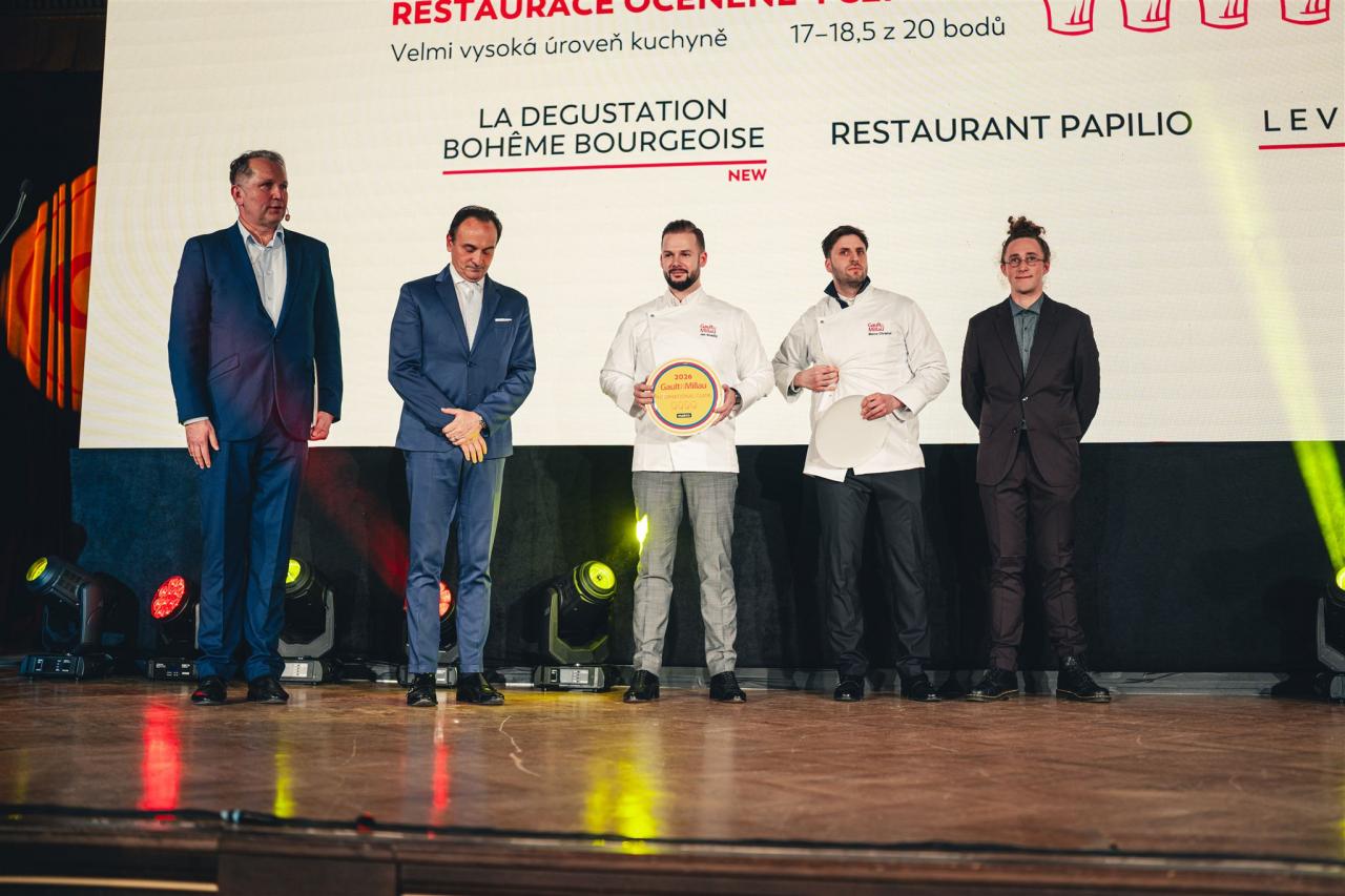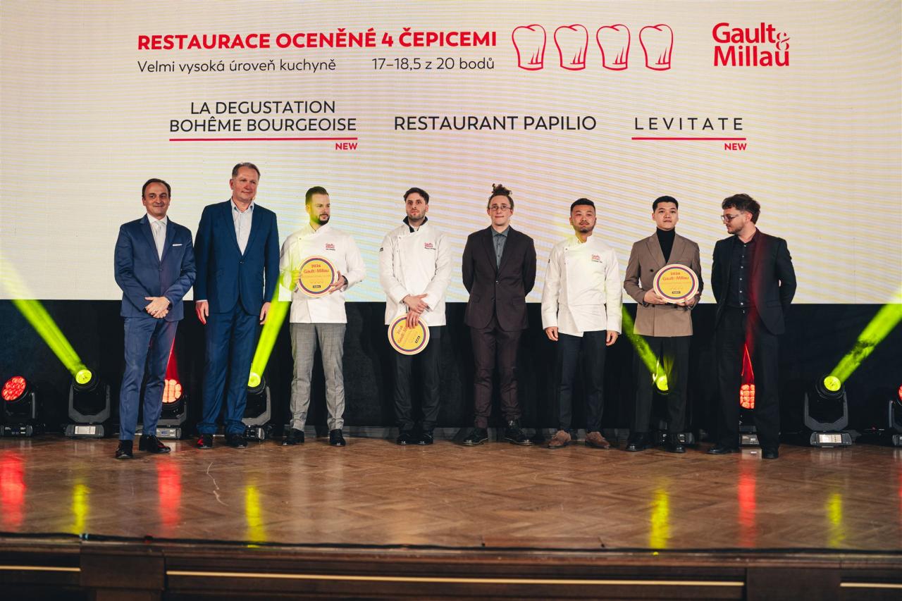 Galavečer Gault&Millau 2026 v Národním domě na Vinohradech potvrdil, že česká gastronomie je na vzestupu. Obrovské množství, celkem 421 hodnocených restaurací, z toho 334 s alespoň jednou čepicí, dokládá širokou základnu kvalitních podniků – od autorských kuchyní po nové regionální koncepty. Zajímavé je, že letos se čtyřčepicových restaurací dočkaly hned tři podniky: loňský jediný držitel čtyř čepic restaurace Papilio, přidali se Levitate a legendární podnik La Degustation Bohême Bourgeoise.