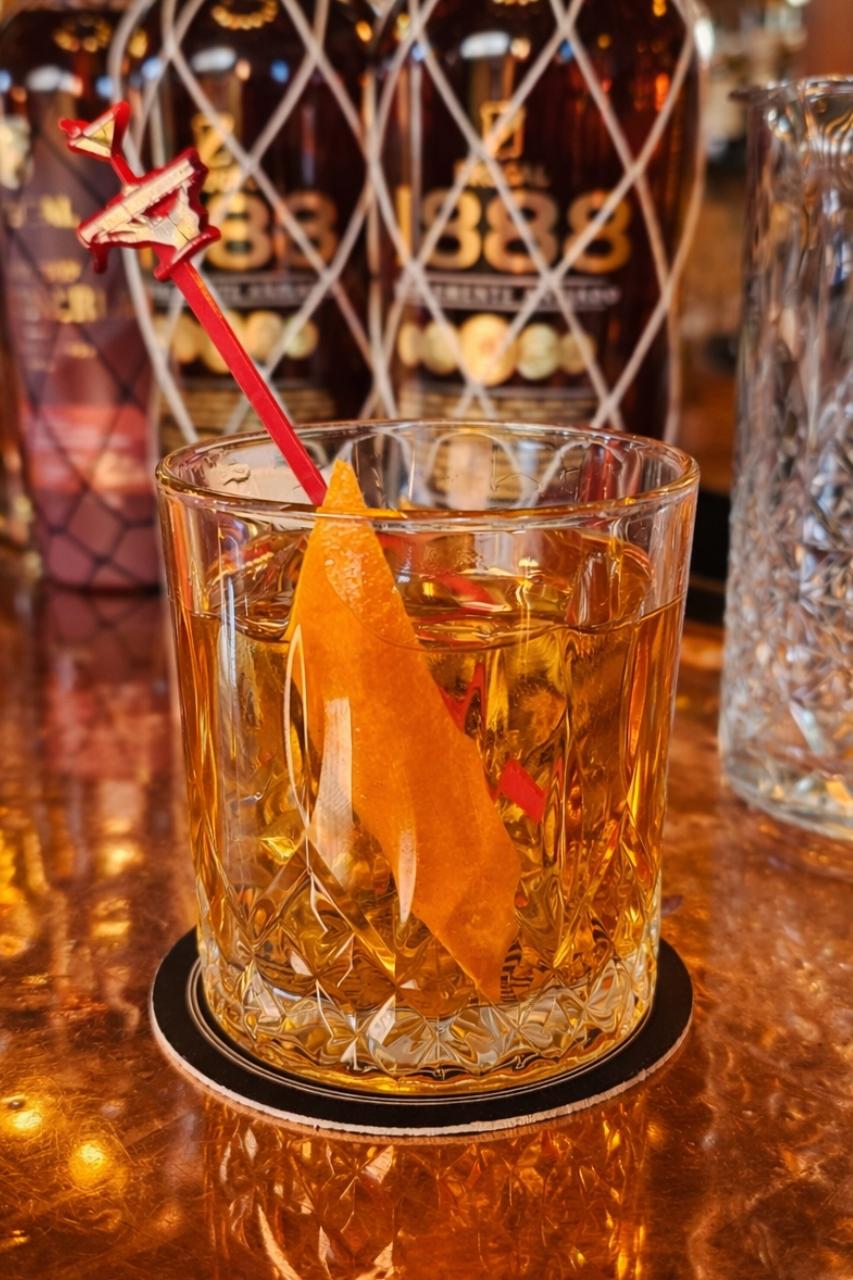 Právě poslední jmenovaný jsme měli možnost ochutnat. Rumový Old Fashioned staví opět na Brugal 1888, který doplňují čokoládové bitters a cukr. Výsledkem je hluboký, hřejivý koktejl s tóny kakaa, karamelu a lehkého dřeva. Rum zde působí plně a elegantně, zatímco čokoládové bitters přidávají jemnou hořkost a aromatickou hloubku. Je to drink, který dokonale zapadá do večerní atmosféry baru.